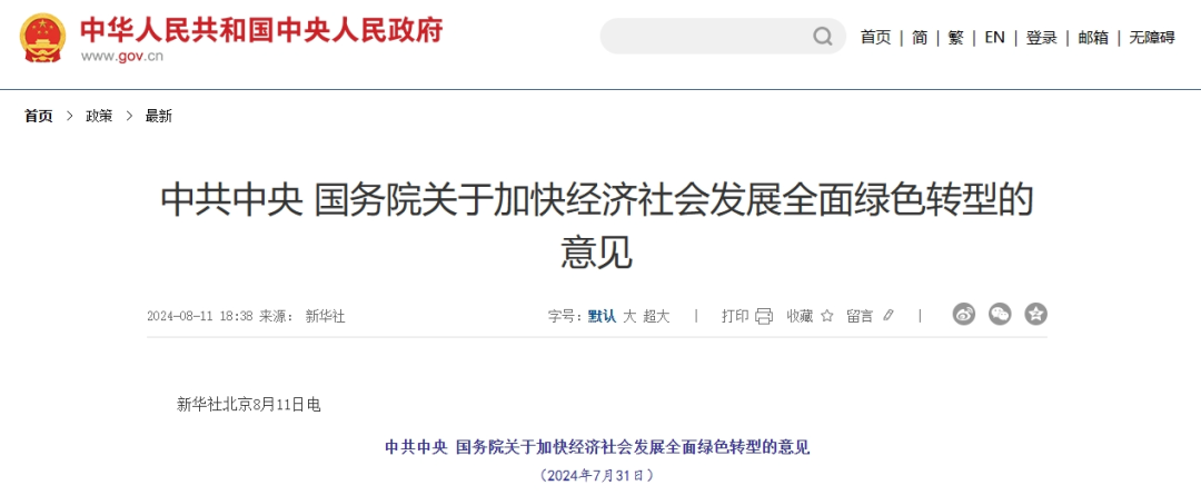 政策速递丨中共中央、国务院首次系统部署:加快经济社会发展全面绿色转型!