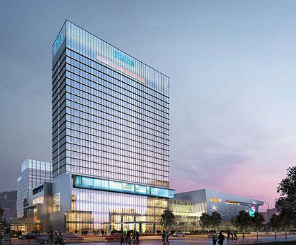 海口宇建国贸城是宇建地产在国贸CBD黄金地段开发的新项目, 位于国贸二横路, 由三栋31层的高层建筑及地下三层停车场组成,是集合精装公寓、高档写字楼、五星级酒店于一身的裙楼商业体。