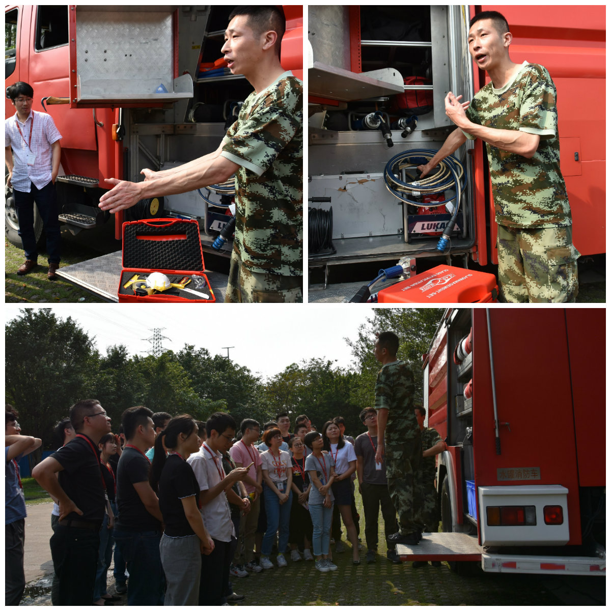 接着苗班长给我们讲解了灭火器的正确使用方法,并给我们做了规范演示。