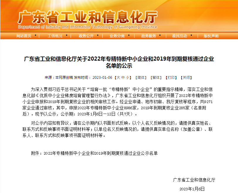 电竞比分网 - 全球电竞比分实时速递成功入选广东省2022年专精特新中小企业!
