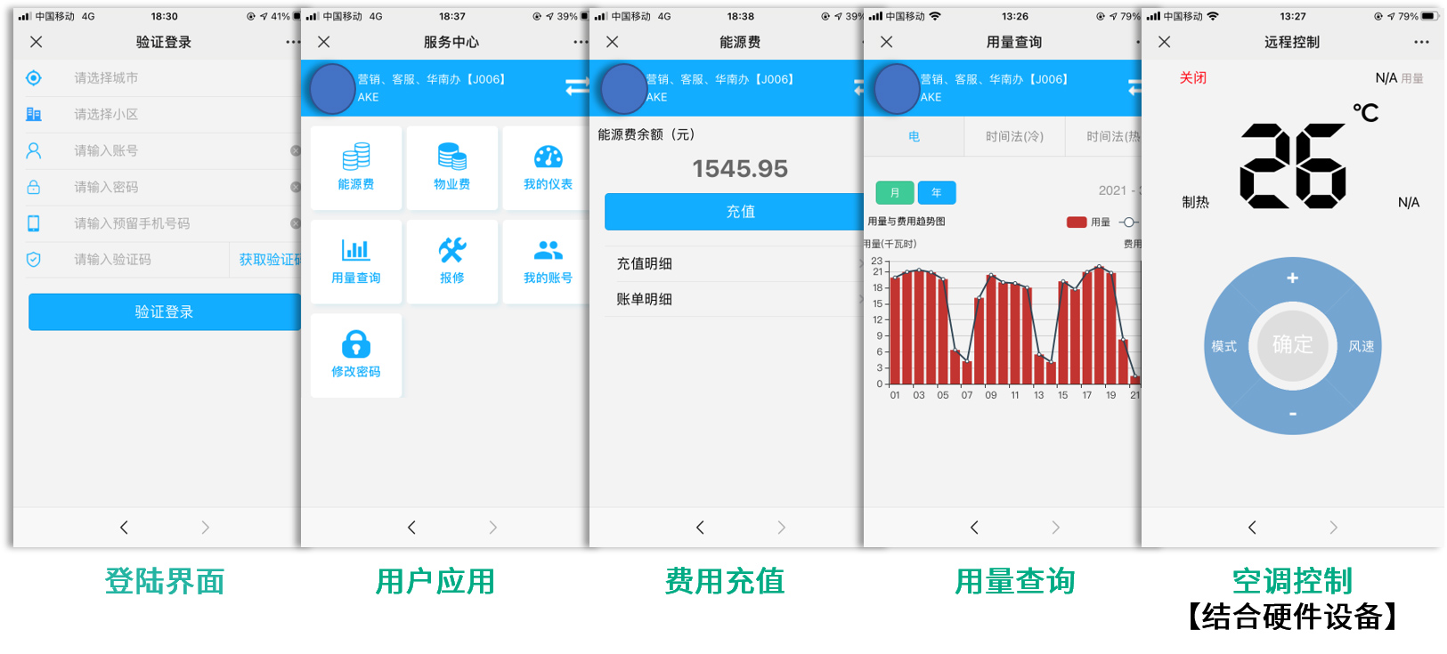 自动统计各用户的能耗费用,自动收费打单,用户移动端缴费;