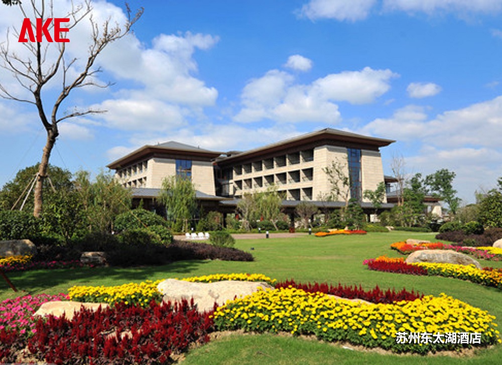 苏州东太湖酒店位于吴江太湖新城南部,坐拥东太湖天然湖泽资源,接壤规划中的低密度景观住宅区和大型运动公园,视野开阔,景观惬意。作为东太湖之滨一座未来新城的地标式建筑,酒店项目分二期;一期占地面积约8万平方米,分为两栋建筑,总建筑面积约3.5万平方米。