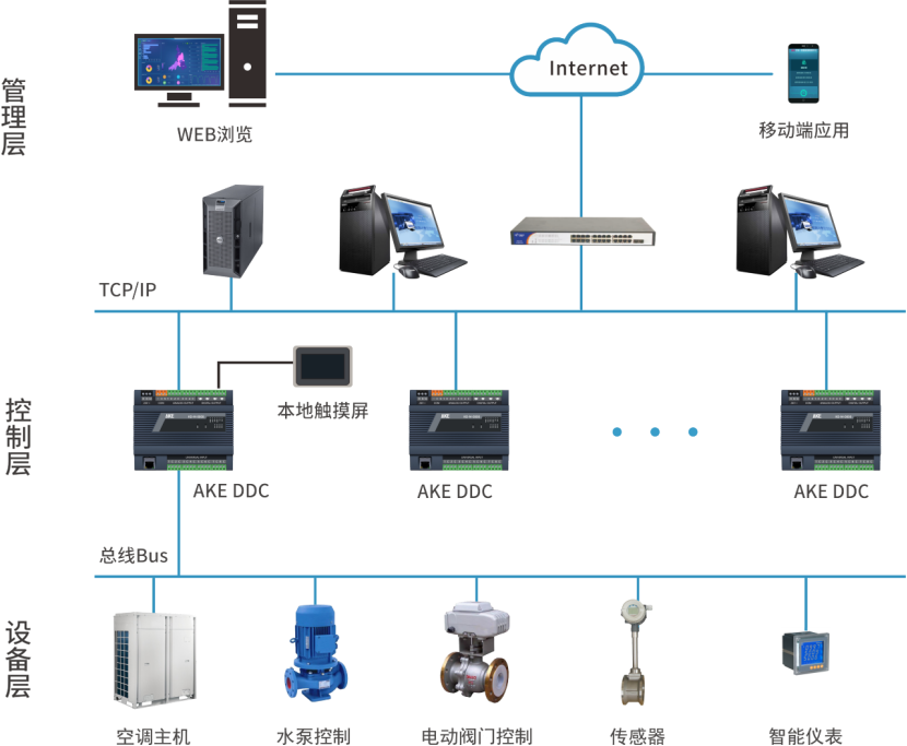 本展览场馆的能源管理系统,以先进的物联网技术为基础,BA楼宇控制系统解决方案为支撑,智慧化平台为抓手,打造智慧能源管理系统,从而确保建筑内所有暖通空调及排风机等机电设备高效、安全运行,节省系统运行能耗,及时发现故障,最大限度延长设备的使用寿命,同时提高馆内人员的舒适感,最终达到节能增效为目标。